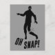 A zombie with his left leg snapping off at the knee while trying to take a step. Below the zombie is the phrase "Oh Snap!" The background colour can be changed when "customizing" this product. When customizing click on the word "edit" then click on "background" then choose colour.