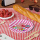 Great accent for an outdoor summer party. Bright colors, vibrant floral design
