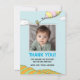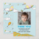 A heartfelt thank you for the places they went, and for a birthday party so wonderfully spent! This whimsical card captures the spirit of adventure with a charming design inspired by the classic Dr. Seuss book, "Oh, the Places You'll Go!" It's the perfect way to share gratitude for all the wonderful gifts and love received, as your little one embarks on their next great journey. With space to add a treasured photo, it's a sweet memento of a truly special day.