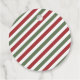 A festive holiday-themed favor tag featuring red, green, and white candy cane stripes, elegant Christmas greenery with red bows, and gold snowflake accents. This charming winter design is perfect for attaching to gifts, treats, or party favors at a first birthday celebration. Ideal for Christmas or winter-themed parties and customizable with a short thank-you message.