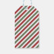 A festive holiday-themed favor tag featuring red, green, and white candy cane stripes, elegant Christmas greenery with red bows, and gold snowflake accents. This charming winter design is perfect for attaching to gifts, treats, or party favors at a first birthday celebration. Ideal for Christmas or winter-themed parties and customizable with a short thank-you message.