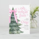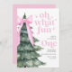 Oh What Fun it is to be one 1st birthday invitation with Christmas tree and pink bow.