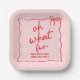 Oh What Fun! Whimsical hand drawn doodle Christmas party plates in pink and red.