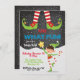 Super Cute "Oh, what Fun!" Holiday or Christmas Pajama party . Features a happy elf, fun fonts and a snowy night sky.