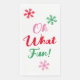 This festive holiday paper guest towel features modern calligraphy script that says "Oh What Fun!" in pink, red, and green with coordinating snowflakes. The look is fun, modern, and festive!