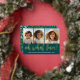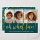 FRONT - The gold foil greeting - oh what fun! - is on top of 3 photos. The family greeting is on the bottom.