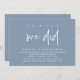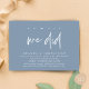 Elegantly announce your happily ever after with our modern minimalist clean dusty blue theme wedding elopement celebration invitation card, "Oh yes, we did". Tailored for couples continuing their love story, this invitation strikes a perfect balance of sophistication and charm, setting the scene for an unforgettable event. Featuring a modern contemporary script design, it adds a touch of timeless grace to your special day. Designed by the talented TeeshaDerrick, this invitation is a stylish expression of your enduring love.