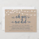 Beautiful Modern Beautiful Rustic Farm String Lights, Navy Blue Script font on Kraft Paper Background, Wedding Elopement Announcement, Invitation card (oh yes we did). This is perfect for your wedding reception and post-wedding celebration party. Add your details in matching font / lettering.