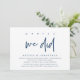 Announce and share your happily ever after in style with our modern navy blue theme design (Oh Yes we did) wedding elopement celebration invitation card. It is ideal for couples who have decided to celebrate their best day. With its sophisticated yet playful design, this invitation is sure to set the tone for an unforgettable event. The invitation card features a modern and minimalist script design theme, adding a touch of timeless elegance to your celebration. Designed by TeeshaDerrick