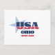 Carte postale Ohio. Un design typographique créatif qui encapsule l'essence de l'Ohio avec des couleurs audacieuses, rouge, blanc et bleu, et des éléments patriotiques, dont des étoiles et des rayures.
