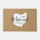 Modern farmhouse personalized doormat with your family name inside your state map. Faux burlap canvas texture background. Click Customize It to add your own text and images and create a unique one of a kind design!