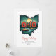 Celebrate the season with this festive Ohio-themed holiday design. The artwork features the outline of the Buckeye State filled with a cozy winter scene — evergreen trees, snowy landscapes, and a glowing sunset sky. Sailboats on the water highlight Ohio’s connection to Lake Erie and the Ohio River, while bold retro-style lettering proudly spells out OHIO for a classic state pride touch. A unique way to honour your home state or share a regional connection during the holidays. Send warm holiday wishes with this customizable Holiday card, with the ability to add your family name and year.