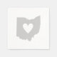 Featuring the outline silhouette map shape of the Buckeye state of Ohio filled in with a solid grey background and a big heart cut out of the middle these love Ohio heart napkins are great for sharing that Ohioan love with your guests at the party and helping them keep their faces clean while enjoying your great food.