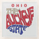 Fun and colourful typographic design with a retro feel features the state of Ohio's nickname: The Buckeye State displayed within a state shaped silhouette