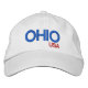 The Ohio is in the state colours of Ohio: red, white, and blue. The hat can be customized: colours, style, sizes, and wording.