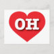 This postcard features a vibrant red heart containing the bold, white, upper case letters OH, the official abbreviation for Ohio, the buckeye state. The reverse side of the postcard is blank, awaiting your handwritten sentiments or customized text.