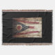 Ohio State Flag on Old Wood Grain Throw Blanket