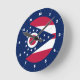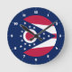 The Ohio state flag is a triangular swallowtail flag, the only non-rectangular U.S. state flag. Its red, white, and blue elements symbolise the state's natural features and order of admission into the Union. A prominent disc in the flag's triangular canton is suggestive of the state's name.
