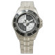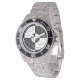 Has heft and feel of expensive stainless steel quartz watches. Good band with safety catch. I removed links, which is easy because engraved arrows show direction to push the linking pins. As always by this seller, the image (a railroad logo) is a perfect reproduction of my emailed image, and is precisely spaced and aligned.