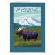 Moose with Mountain - Wyoming - LP Poster original - a été créé en 2008. Cette image représente des scènes du Wyoming.