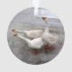 Photo de Zolotareva.Oie blanche sur la neige blanche.Oies sont drôles.Vous pouvez ajouter nom ou texte personnalisé. Personnalisez ce modèle.