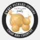 Autocollants ronds de pot d'oignon faits maison personnalisés qui peuvent également être utilisés pour les cornichons. Doté d'une bordure noire, d'un texte blanc, d'une image de quelques oignons, et d'un modèle à ajouter qui les a ramassés et la date.