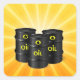 Three black barrels of oil against a yellow background. This design looks really effective on these Stickers