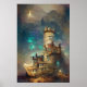 Oil Painting Castle, Castle In Starry Night, Retro Poster