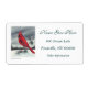 La peinture de Linda Baysinger Peck d'un oiseau cardinal rouge du nord, assis sur une branche de pin, dans la neige. Ajoutez simplement votre texte pour customiser. Image © Linda Baysinger Peck Tous droits réservés