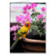 Oiseau coloré avec les fleurs roses lumineuses