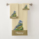 Joli petit oiseau sur des serviettes beiges claires. Le texte peut être personnalisé, le texte et l'image sur un seul côté.