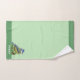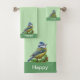Joli petit oiseau sur les serviettes vert clair. Le texte peut être personnalisé, le texte et l'image sur un seul côté.