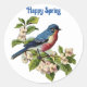 Belle, photo d'un oiseau bleu sur une branche avec fleurs roses, est présenté sur cet autocollant rond pour le printemps. Avec le message "Happy Spring", c'est un grand autocollant à utiliser sur les mailings spéciaux, la décoration, scrapbooking et plus encore pour le Printemps et Pâques!