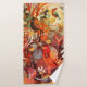 Serviette de bain en imaginaire colorée au design artistique abstrait avec oiseaux tropicaux. Idéal pour égayer une salle de bain.