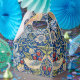 Ballotin avec les oiseaux sur l'arrière - plan fleuri et bleu.