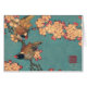 Oiseaux japonais et fleurs - Ce beau tableau d'oiseaux et de fleurs est un tableau asiatique vintage redessiné par Katasushika Hokusai peint en 1811, redessiné pour notre ligne cadeau. Il présente des chicadés et des fleurs d'arbres roses, sur un bel arrière - plan bleu turquoise.