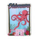 Okinawa Japan Squid travel poster, Japanese cartoon vacation print.