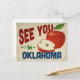 A charming Oklahoma vintage travel postcard featuring a lovely red apple, along with fun retro style text that says, "See you in Oklahoma"