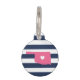 Let your furry friend show some home state pride with this cute Oklahoma pet ID tag. Design features a white silhouette map of the state of Oklahoma in pink with a white heart inside, on a preppy navy blue and white stripe background. Add your pet's name and contact information to the back in white lettering on a pink background.