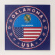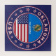 Badge of Oklahoma with flag of Oklahoma and flag of USA colours.