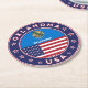 Badge of Oklahoma with flag of Oklahoma and flag of USA colours, rounded shape.