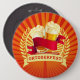 Oktoberfest Beer Glasses on Red Gold Sunburst 6 Inch Round Button