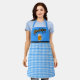 Fun Oktoberfest inspired apron done in the traditional blue and white diamond pattern of Munich's Oktoberfest. A solid blue bib area, edged in black, has graphics of a glass beer stein and fancy graphic text reading Oktoberfest.