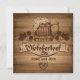 A rustic invitation perfect for celebrating Oktoberfest. It features a wooden mug of overflowing, frothy beer over an "Oktoberfest" sign. The words "Come and Join" are preprinted. There is also a pretzel and foliage sprigs - all on a wooden background. (FDF)