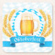 Oktoberfest Frothy Beer Mug Square Paper Coaster. Oktoberfest Frothy Beer Mug on chequered blue flag surrounded by a wreath of wheat.