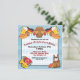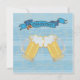 Super fun Oktoberfest invitation de la fête avec des wieners, bière, drapeau allemand, tonneau de bière, accordéon, tuba et laderhosen, le tout sur des planches de bois bleu passé. Le dos est illustré de tasses de bière défraîchies pour un look peint usé. Beaucoup de place sur le dos pour plus d'informations de fête, il suffit de taper sur les tasses à bière. Illustration tirée à la main par McBooboo.