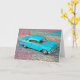 Retro turquoise 1957 automobiel on road map for dad on Father's Day