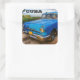 Old blue American classic car at sunset time in mountainous and green outdoor setting in Trinidad, Cuba.