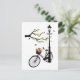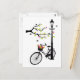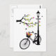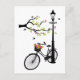 Old bicycle with lamp, flower basket, birds, tree postcard