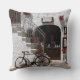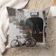 Photo throw pillow cushion with an old bicycle and a white art store storefront in the city of Ostuni in Apulia, Italy.